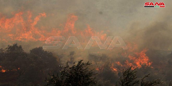 استمرار الحرائق في منطقة البارقية بريف صافيتا الشرقي