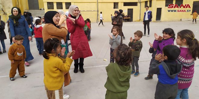 واصل فريق الشباب التطوعي في مديرية الثقافة بالتعاون مع اتحاد شبيبة الثورة في حلب تقديم الدعم النفسي للأطفال المتضررين من الزلزال وتشجيعهم، والعمل على رسم الابتسامة على وجوههم، من خلال تنفيذ عدد من الأنشطة في مراكز الإيواء.