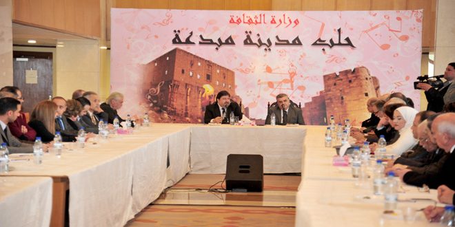 وأكد وزير الثقافة محمد الأحمد خلال اللقاء أن ترشيح مدينة حلب لقائمة شبكة المدن المبدعة يعد انتصارا ثقافيا وطنيا مهما وخاصة بعد الدمار الكبير الذي لحق بالمدينة العريقة على يد التنظيمات الإرهابية المسلحة إضافة إلى توجيه رسائل حضارية وإنسانية لداخل سورية وخارجها.