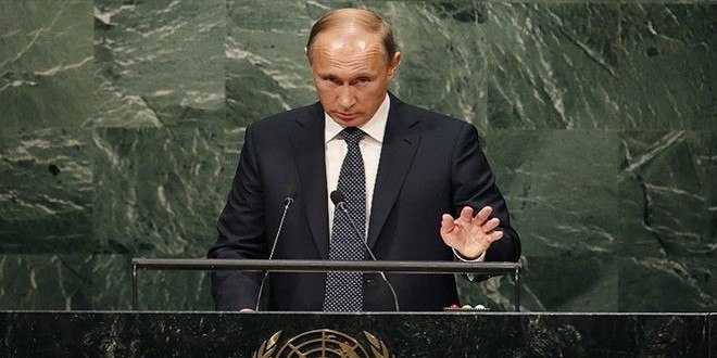 وقال الرئيس بوتين في كلمة له أمام الجمعية العامة للأمم المتحدة اليوم في دورتها السبعين “إننا نشهد حاليا في العديد من دول الشرق الأوسط وشمال أفريقيا مناطق يتدفق لإليها المتطرفون والإرهابيون تحت راية ما يسمى الدولة الإسلامية” مشيرا إلى أن هؤلاء الإرهابيين هم من المتطرفين والمسلحين بما في ذلك العسكريون العراقيون الذين كانوا مهمشين نتيجة للعدوان والتدخل في العراق في عام 2003 وأيضا يأتون من ليبيا التي تعرضت لعدوان سافر خلافا للقرار الأممي.