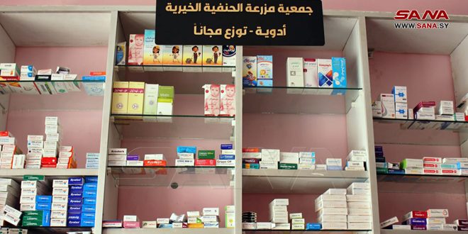 افتتحت جمعية مزرعة الحنفية الخيرية في ريف طرطوس صيدلية مجانية (مركزاً لتوزيع الأدوية المجانية) بإشراف أطباء وصيادلة القرية بهدف مساعدة أهل القرية في ظل الظروف الراهنة.