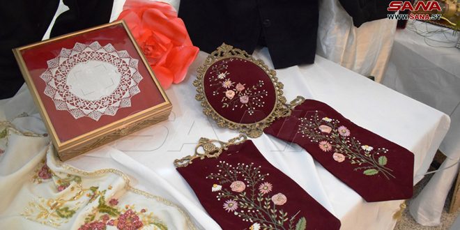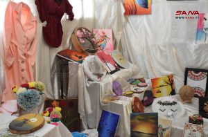 تضمن معرض المشغولات اليدوية الذي افتتحته مديرية التربية في حلب اليوم لطلبة معهد الاقتصاد المنزلي أعمالاً ومعروضات متنوعة من الصوف والكروشيه والتطريز والخياطة وتدوير توالف البيئة والرسم على الخشب والرسم والزخرفة.