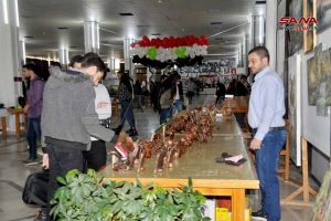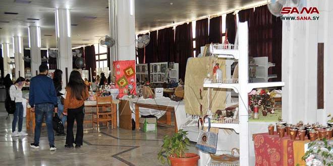 افتتح في المكتبة المركزية بجامعة تشرين اليوم معرض لمة فرح للصناعات اليدوية والفنون التشكيلية بمشاركة فعاليات وجمعيات أهلية وطلابية ويستمر 4 أيام.
