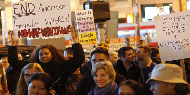 الآلاف يتظاهرون في أنحاء الولايات المتحدة رفضاً للتصعيد الأميركي ضد إيران ولشن أي حرب عليها