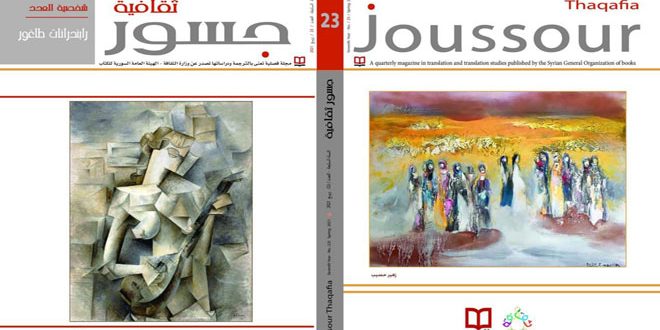رئيس تحرير جسور حسام الدين خضور تحدث في مقالة بعنوان حان الوقت للترجمة عن تطور هذه المهنة الإبداعية لما لها من حاجة موضوعية لمتطلبات الحياة المعاصرة وضرورة إحداث مؤسسة ترجمة تستثمر قدرات المترجمين السوريين والعرب وتسهم في نقل الإنتاج المعرفي العلمي والفني العالمي.