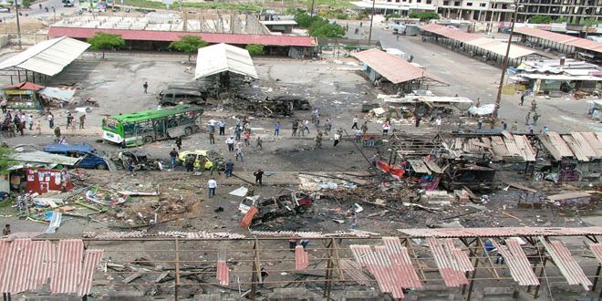 وكانت عدة تفجيرات إرهابية متزامنة استهدفت يوم الاثنين الماضي كراج الانطلاق ومديرية الكهرباء والمشفى الوطني في جبلة وكراجات الانطلاق وضاحية سكنية في طرطوس وتسببت باستشهاد وإصابة عشرات المواطنين بجروح.