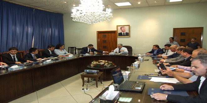 بحث وزير الأشغال العامة والإسكان المهندس حسين عرنوس مع رئيس مجلس إدارة المجمع السوري الأوروبي للصناعات الثقيلة ووفد من شركة سانغ غروب الصينية آفاق التعاون ضمن مجالات عمل الوزارة والجهات التابعة لها.