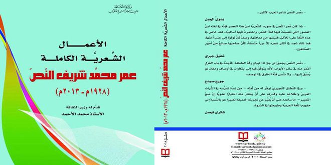 صدر حديثا عن الهيئة العامة السورية للكتاب “الأعمال الشعرية الكاملة للشاعر عمر محمد شريف النص”.