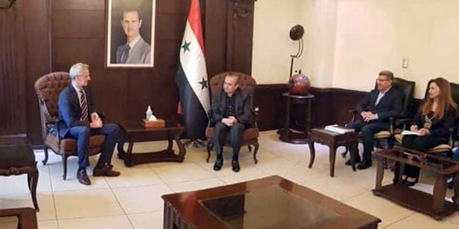 بحث وزير الإدارة المحلية والبيئة رئيس اللجنة العليا للإغاثة المهندس حسين مخلوف اليوم، مع الممثل والمدير القطري لبرنامج الغذاء العالمي في سورية كينيث كروسلي والوفد المرافق سبل تعزيز التعاون بين الجانبين، عبر التنسيق مع اللجان الفرعية بالمحافظات، بما يسهم في تغطية الاحتياجات.