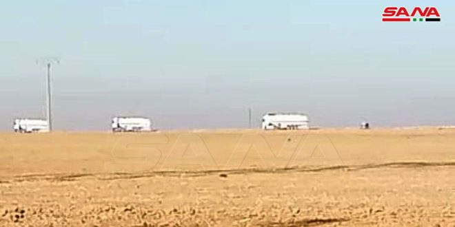 وذكرت مصادر محلية من ريف اليعربية بريف الحسكة الشمالي الشرقي لمراسلة سانا أن رتلاً مؤلفاً من 70 آلية بينها صهاريج محملة بالنفط المسروق من الجزيرة السورية وناقلات على متنها عدة مدافع وسيارات عسكرية وعدد من السيارات العسكرية “همر” تابعة لقوات الاحتلال غادرت الأراضي السورية عبر معبر الوليد غير الشرعي إلى قواعد الاحتلال في شمال العراق.
