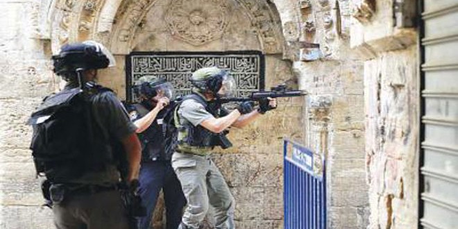 وكانت قوات الاحتلال الخاصة اقتحمت صباح اليوم باحات المسجد الأقصى المبارك وأطلقت قنابل الصوت والأعيرة المعدنية المغلفة بالمطاط صوب المصلين.