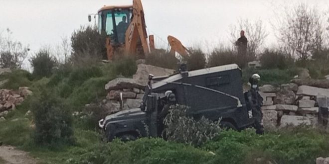 جرفت قوات الاحتلال الإسرائيلي اليوم منطقة أثرية في بلدة الخضر جنوب مدينة بيت لحم في الضفة الغربية.