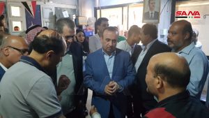 وجال الوزيران في منطقة سوق الهال والسوق التجاري والمجمع الاستهلاكي في مدينة الحسكة واطلعا على مدى توافر مختلف المواد الغذائية ومستلزمات المعيشة فيهما إضافة إلى زيارة السجل المدني والمخبز الآلي والثانوية التجارية والمركز الطبي المحدث للاطلاع على الخدمات التي تقدم للمواطنين والجهود التي تبذل في سبيل التخفيف عنهم من تداعيات العدوان التركي على الأراضي السورية.