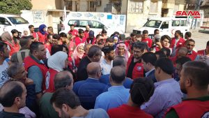 في إطار المتابعة الحكومية للأوضاع في محافظة الحسكة ومواجهة الظروف الناشئة عن عدوان النظام التركي وآثاره على الخدمات التي تقدمها المؤسسات الحكومية للمواطنين زار وزيرا الإدارة المحلية والبيئة المهندس حسين مخلوف ووزير التجارة الداخلية وحماية المستهلك الدكتور عاطف نداف مدينتي الحسكة والقامشلي واطلعا على الخدمات الصحية ومدى توافر المواد الغذائية في الأسواق.