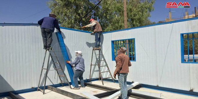 وأشارت مديرة التربية الهام صورخان في تصريح لمراسلة سانا إلى أن دائرة الأبنية في تربية الحسكة بدأت أعمال تركيب 12 غرفة صفية مسبقة الصنع في مدينة القامشلي ومن المتوقع الانتهاء من تركيبها خلال الفترة القريبة القادمة ليتم وضعها في الخدمة مع انطلاق العام الدراسي الجديد ولتخفيف الازدحام داخل الشعب الصفية وخاصة بعد أن استولت ميليشيا “قسد” على غالبية المدارس في مناطق سيطرتها وحولت قسما منها إلى مقرات لها.