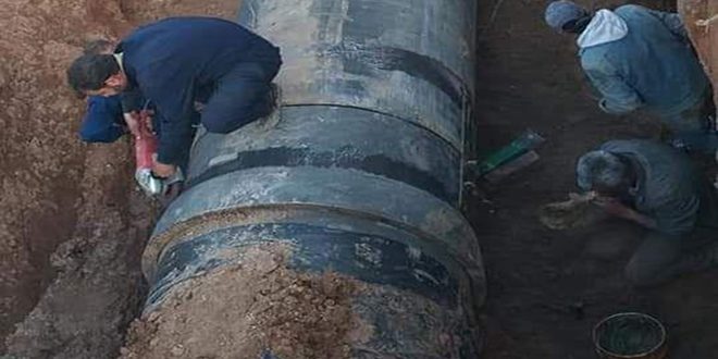 أنهت ورشات الصيانة التابعة للمؤسسة العامة لمياه الشرب في محافظة الحسكة مساء اليوم أعمال صيانة خط نقل المياه المغذي لمدينة الحسكة الذي تعرض لعدوان تركي أمس الأول أدى إلى خروجه من الخدمة .