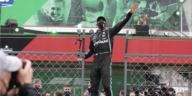 فاز البريطاني لويس هاميلتون سائق مرسيدس اليوم بسباق جائزة البرتغال الكبرى المرحلة الثانية عشرة في بطولة العالم لسيارات الفئة الأولى “فورمولا1” ليكسر بذلك رقم الأسطورة الألماني مايكل شوماخر في عدد مرات الفوز.