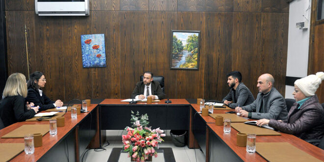 بحث مدير التخطيط والتعاون الدولي في وزارة التربية والتعليم يوسف عنان مع وفد من مكتب الأمم المتحدة لخدمات المشاريع في سوريا “unops” سبل تعزيز التعاون التربوي بين الوزارة والمكتب لتطوير العملية التربوية.