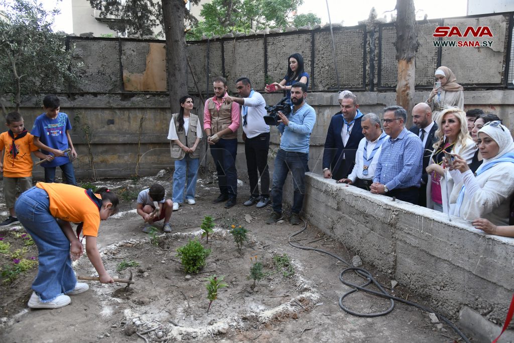 أطلقت وزارة التربية بالتعاون مع الغرفة الفتية الدولية بدمشق واتحاد غرف الزراعة السورية اليوم مشروع المشتل المدرسي الذي يقام ضمن مراحل مشروع المدرسة الخضراء لتعزيز أهداف التنمية المستدامة ونشر ثقافة الاهتمام بالمساحات الخضراء وذلك في مدرسة التطبيقات المسلكية بدمشق.