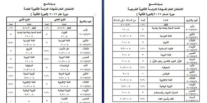 أصدرت وزارة التربية برامج امتحانات الدورة الثانية لعام 2017 للشهادة الثانوية بمختلف فروعها على أن تبدأ في الثلاثين من تموز القادم.