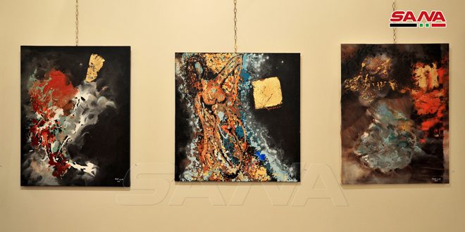 التشكيلي بسيم السباعي يمزج الفن بالهندسة في معرضه (المربع الذهبي الناقص) 2019-11-14ــ تصوير: كناز عثمان