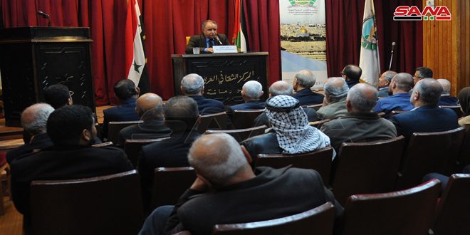 حضر المحاضرة الدكتور محمد مصطفى ميرو رئيس اللجنة الشعبية العربية السورية لدعم الشعب الفلسطيني ومقاومة المشروع الصهيوني وسفير اليمن بدمشق نايف القانص وعدد من قادة وممثلي الفصائل الفلسطينية والأحزاب الوطنية السورية والفلسطينية وفعاليات سياسية واقتصادية واجتماعية وعلمية وثقافية ودينية.