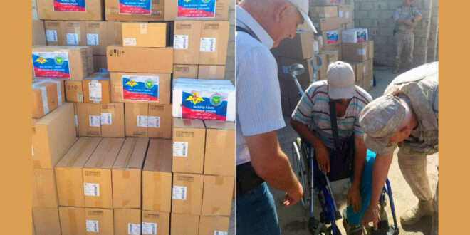 وذكر نائب رئيس القسم الإقليمي للمركز الروسي النقيب أوليج من الرتبة الأولى إجناسيوك أن هذا العمل هو نتيجة عمل مشترك مع الحكومة السورية والهلال الأحمر العربي السوري، حيث تم خلال العملية تسليم ستة أطنان من المواد الغذائية لسكان المخيم، شملت الدقيق والرز والشاي وزيت عباد الشمس والسكر والحليب المعلب كما تم التبرع بأكثر من 700 كيلوغرام من الأدوية والمعدات الطبية الأخرى وكرسي متحرك.