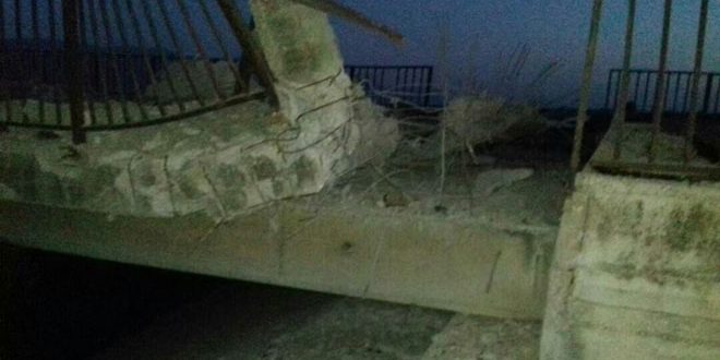 واصلت التنظيمات الإرهابية أعمالها التخريبية التي تستهدف البنى التحتية ومنازل المواطنين حيث أقدمت خلال الساعات القليلة الماضية على تدمير جسر التوينة في ريف حماة الشمالي الغربي.