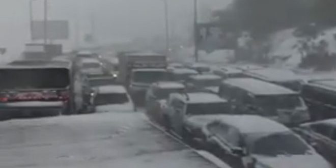 الثلوج تُغلق الطريق الدولي بين سورية ولبنان في منطقة ضهر البيدر