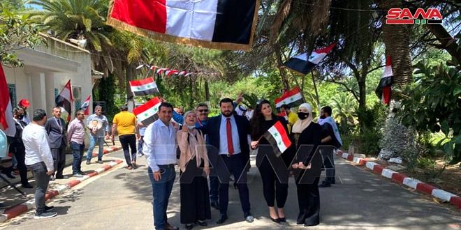 وأكد السفير الغانم أن المشاركة الواسعة لأبناء الجالية تعبر عن حبهم وانتمائهم لوطنهم واعتزازهم بقيادته الشجاعة ومواصلة العمل لبناء سورية المتجددة وإعادة إعمار ما دمره الإرهاب.