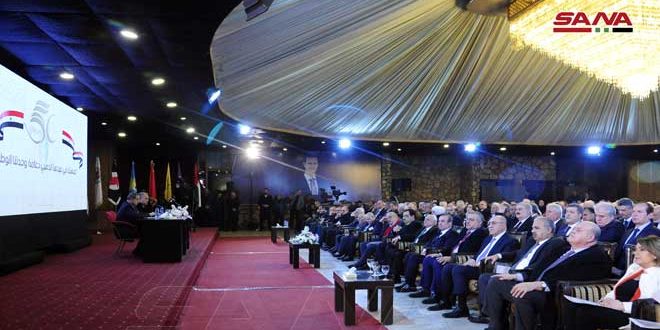 وشددت الجبهة في بيان بختام أعمال مؤتمرها الحادي عشر الذي عقدته اليوم تحت شعار “جبهتنا في عيدها الذهبي دعامة وحدتنا الوطنية” على أنها ماضية في التعبير عن إرادة الشعب التي شكلت القوة الحقيقية في مواجهة التحديات والمشاريع المعادية انطلاقا من الرؤية الشاملة التي يمتلكها السيد الرئيس بشار الأسد رئيس الجبهة الوطنية التقدمية المرتكزة إلى الوعي الوطني والاجتماعي للسوريين الذين واجهوا بقيادته الحرب الإرهابية بوحدة وطنية راسخة ومحصنة كما يواجهون اليوم الحرب الارهابية الاقتصادية.