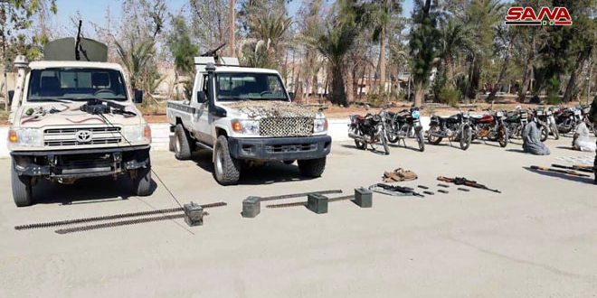 قضت مجموعات المهام الخاصة في الجهات المختصة على إرهابيين اثنين من تنظيم “داعش” الإرهابي وألقت القبض على 7 آخرين وصادرت لهم كمية من المواد المخدرة وآليتين ومحطة اتصال وبنادق آلية ورشاشا وذخائر أمريكية الصنع وذلك في كمين مزدوج بريف منطقة تدمر بحمص.