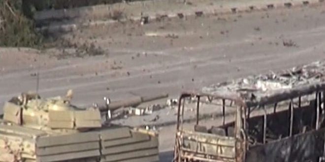 ودمرت وحدة من الجيش خلال العمليات المتواصلة على مواقع التنظيمات الإرهابية في درعا أمس دبابة وسيارة لإرهابيي “جبهة النصرة” على طريق