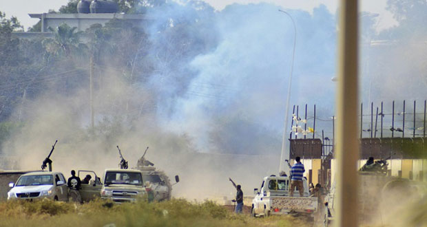 وتتواصل الاشتباكات المسلحة بين وحدات من الجيش يقودها اللواء حفتر منذ منتصف أيار الماضي من جهة وميليشيات مسلحة متطرفة تطلق على نفسها أنصار الشريعة من جهة أخرى في ظل تردي الأوضاع الأمنية والحياتية في مختلف أنحاء ليبيا.