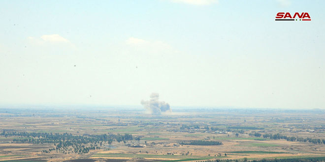 واصل سلاحا الجو والمدفعية في الجيش العربي السوري ضرباتهما المركزة على تحصينات وأوكار إرهابيي تنظيم “داعش” في منطقة وادي اليرموك جنوب غرب درعا وأوقعا في صفوفهم خسائر بالأفراد والعتاد.
