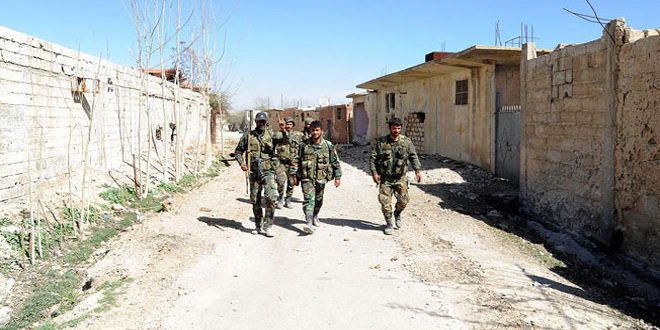 وكانت القيادة العامة للجيش والقوات المسلحة أعلنت يوم الجمعة الماضي استعادة السيطرة على أكثر من 70 بالمئة من مناطق انتشار التنظيمات الإرهابية في الغوطة الشرقية بريف دمشق.
