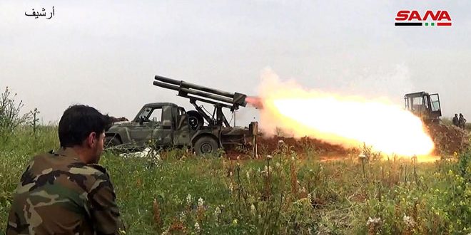 كما استهدفت مدفعية الجيش والراجمات مواقع تلك المجموعات الإرهابية وخطوط إمدادها في قرية شير مغار في جبل شحشبو شمال غرب حماة.