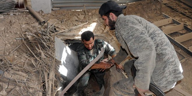 عثرت وحدات من الجيش العربى السوري اليوم على عدد من الأنفاق خلال أعمالها المتواصلة لتأمين الاهالى وتعزيز الامن والاستقرار في بلدتي حزة وعين ترما بالغوطة الشرقية في ريف دمشق.