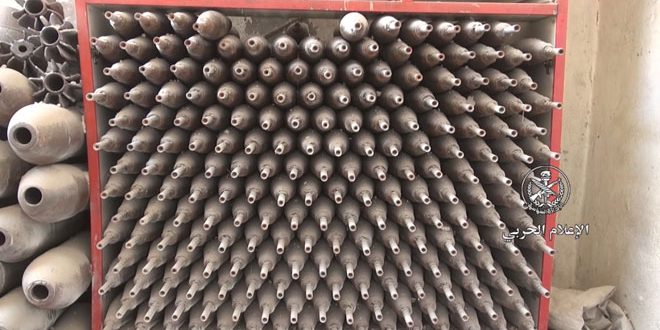 الجيش يعثر على مستودع يحتوي مواد محرمة دوليا من مخلفات الإرهابيين في أفتريس بالغوطة