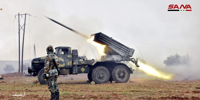 وأفاد مراسل سانا من منطقة العمليات بأن وحدات الجيش تابعت استهدافاتها المركزة ضد الإرهابيين على محور سراقب بريف إدلب الجنوبي الشرقي ونفذت ضربات نارية مكثفة بسلاحي المدفعية والصواريخ على مواقع المجموعات الإرهابية وخطوط امدادها ومحاور تحركها وأوقعت في صفوفها العديد من القتلى ودمرت عدة مدرعات وعربات ثقيلة.