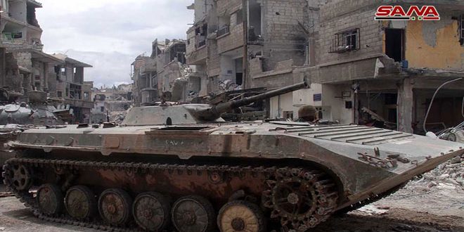 وبين المراسل أن وحدات الجيش البرية تنفذ عمليات دقيقة ضد القناصين ومناطق انتشارهم وتحصيناتهم إضافة إلى الانفاق التي تنقل الإرهابيين بين الأحياء وكتل الأبنية.