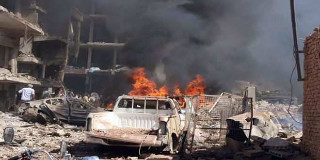 وكان إرهابي انتحاري فجر سيارة مفخخة قبل ظهر اليوم في حي الغربية على الطريق الواصل بين دوار الهلالية ودوار مدينة الشباب في الجهة الغربية لمدينة القامشلي ما أدى إلى ارتقاء عشرات الشهداء والجرحى.