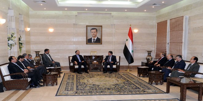 بحث الدكتور وائل الحلقي رئيس مجلس الوزراء مع مساعد وزير الخارجية الإيراني للشؤون العربية والإفريقية حسين أمير عبد اللهيان اليوم سبل تعزيز التعاون السوري الإيراني في المجالات كافة لدعم صمود الشعب السوري، فيما تناول اللقاء الذي جمع وزير الخارجية وليد المعلم مع عبد اللهيان الأفكار الإيرانية لحل الأزمة في سورية ومكافحة الإرهاب المدعوم من دول معروفة والذي يهدد الأمن والاستقرار في سورية والمنطقة والعالم.