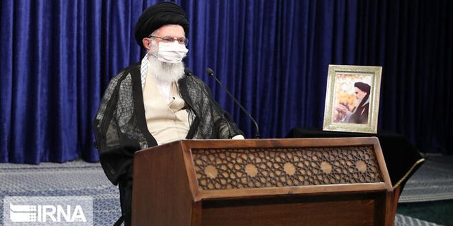 وشدد الخامنئي على أن رفع العراقيل التي تحول دون تطوير الإنتاج هو من الواجبات الأساسية للحكومة في ظل الأوضاع التي تمر بها إيران جراء الحظر الأمريكي الجائر.