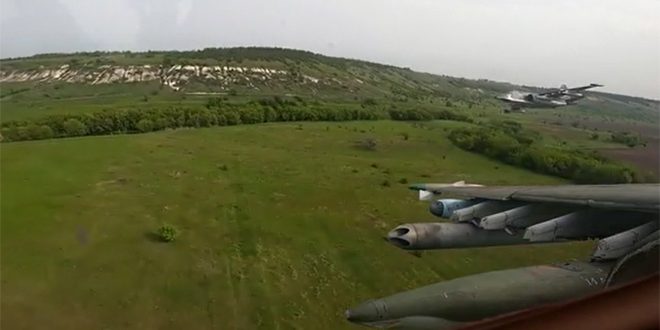 نشرت وزارة الدفاع الروسية لقطات لطلعات قتالية لمقاتلات روسية من طراز سو 25 دمرت خلالها مواقع ومعدات مموهة تابعة للقوات الأوكرانية بصواريخ (تولومباس) الروسية.