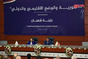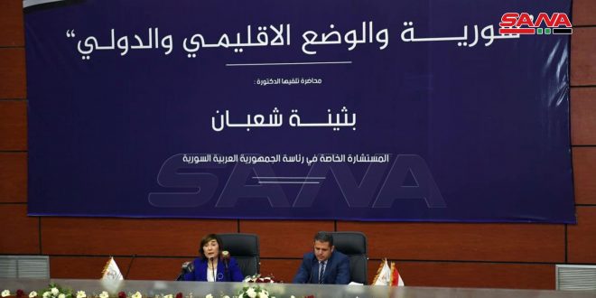 وشددت الدكتورة شعبان على أن سورية كانت وما تزال أنموذجاً فريداً للعيش المشترك وتقف ضد الإرهاب والاحتلال والهيمنة وتنادي بالمساواة الإنسانية بغض النظر عن العرق والدين ما قض مضاجع الكيان الصهيوني الذي يعمل بالتعاون مع الولايات المتحدة على تعميم أنموذج العرقية والطائفية بالمنطقة.
