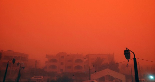 وتتعرض المحافظة اليوم لعاصفة ترابية ورياح شديدة امتدت إلى مختلف أنحاء المحافظة وذكر متنبئ جوي بدير الزور لمراسل سانا أنه نتيجة المنخفض الجوي الذي تتعرض له البلاد تتأثر المحافظة برياح جنوبية غربية شديدة بلغت سرعتها 40 كيلو مترا بالساعة مترافقة مع أتربة وغبار مبينا أن هذه العاصفة ستبدأ بالانحسار اعتبارا من مساء اليوم.