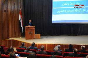 الدكتور محمود الكوري ممثل غرفة زراعة دمشق واتحاد الغرف الزراعية، أكد الحرص على المشاركة في ورشات البحث العلمي، ولا سيما أن البلاد بحاجة إلى هذا الأمر في المجال الزراعي من أجل إنتاج الأعلاف والأسمدة والمبيدات محلياً، وكذلك تطوير البذور أيضاً وإيجاد الحلول المناسبة للصعوبات والعوائق الموجودة.