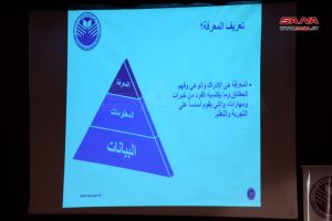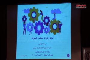 وقدم الدكتور مجد الجمالي مدير عام الهيئة العليا للبحث العلمي عرضاً حول آليات وأدوات استثمار المعرفة، مبيناً أن أهمية استثمار المعرفة تبرز في البلاد التي استنزفت فيها مواردها الطبيعية نتيجة لمسببات عدة، وهنا يظهر بشدة دور ما تملكه من رأسمال فكري قادر على تعويض تلك الخسارات المادية عن طريق منتجاتها المعرفية.