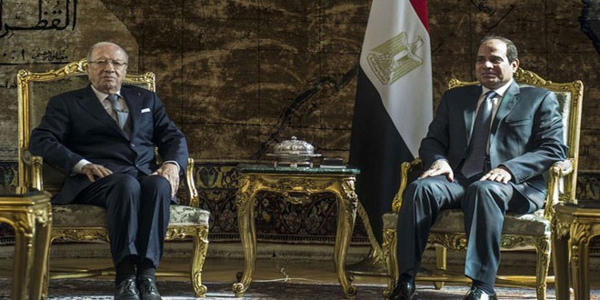أكد الرئيس المصري عبد الفتاح السيسى ونظيره التونسي الباجي قايد السبسي ضرورة العمل للوصول إلى تسوية سياسية فى سورية تحافظ على وحدتها.